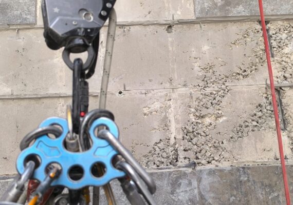 Работы выполняются с верёвочного доступа без установки лесов.