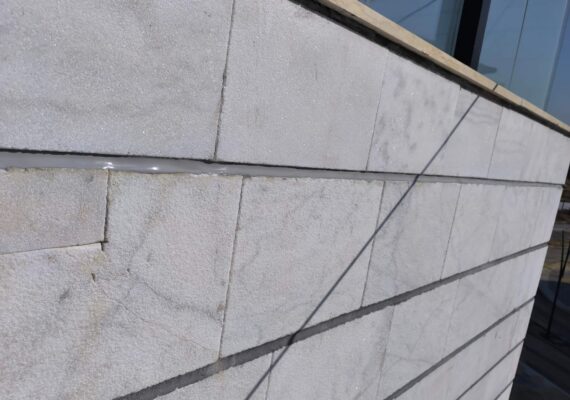 – очистка камня от бетона и строительных загрязнений; – герметизация вертикальных и горизонтальных швов (Sikaflex), при необходимости с установкой профиля гибуй; – закрытие швов кохлей и щелей под копингом; – локальный ремонт и замена повреждённых камней; – заделка и покраска отверстий на потолках и фасадах; – покраска металлических элементов (включая окна мамада снаружи); – монтаж и демонтаж отдельных фасадных элементов; – устранение замечаний технадзора и подготовка фасада к передаче.